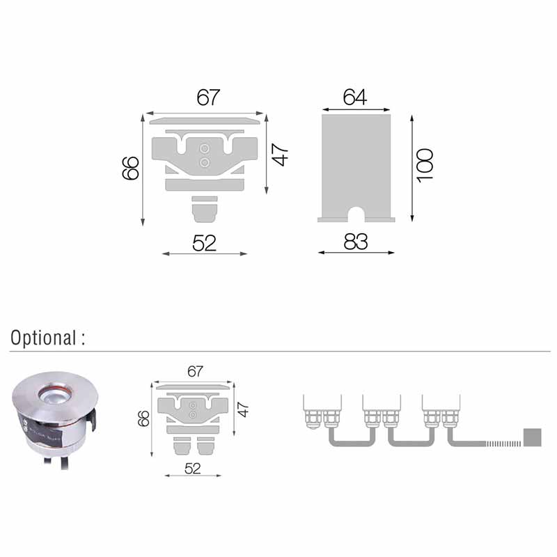 Leuchte für Bodeneinbau, unter Wasser oder jeglich andere Aussenanwendung